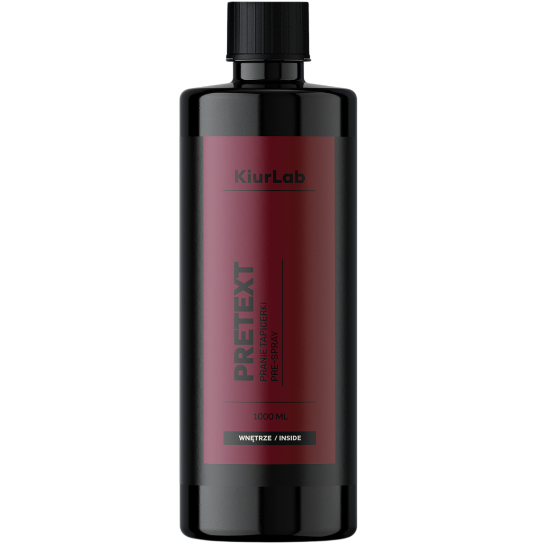 PRETEXT marki KiurLab to zaawansowany preparat typu pre-spray, przeznaczony do czyszczenia tapicerki materiałowej, boczków drzwi, dywaników oraz do bonetowania podsufitek. Działa szybko i skutecznie – rozpuszcza tłuszcze, zabrudzenia organiczne i trudne plamy, głęboko penetrując strukturę tkaniny i przywracając jej pierwotną czystość. Jego formuła zapewnia zrównoważone pienienie, brak osadów i łatwe wypłukiwanie, co znacząco usprawnia pracę. Dzięki temu preparat nie tylko skutecznie czyści, ale także podnosi efektywność całego procesu czyszczenia tapicerki.